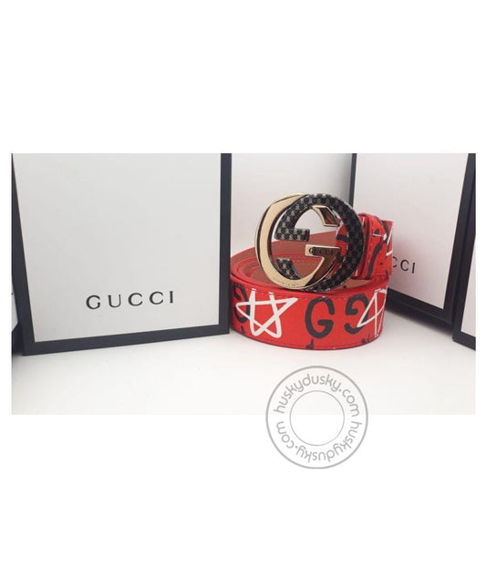 Gucci Multi Color RedLeather Men's Women's GC-RGB-01 Waist Belt for Man Woman or Girl Gold Black Circle GG Buckle Gift Belt