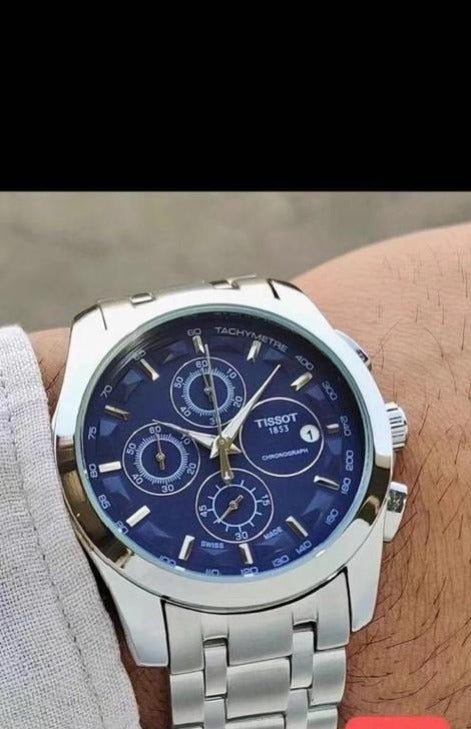 Tissot Chronograph Men's Watch Silver Metal Case Blue Dial Formal Casual Dated Watch for Men's TS-SB-3964