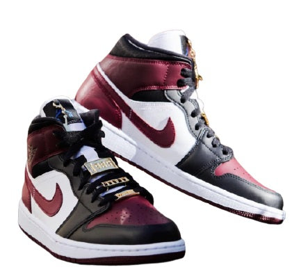 Nike Air Jordan 1 Mid SE Gold Pendants Black Shoes For Mens And Boys Dark Beetroot CZ4385-016