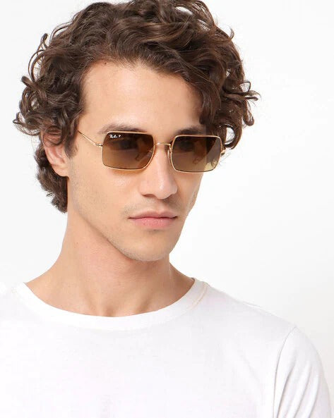 RayBan Rectangular Frame Sunglass With Brown Len's Sunglass For Men's Women's Or Girls Brown Glass And Gold Frame Sunglasses RB-8921 Unisex Sunglass