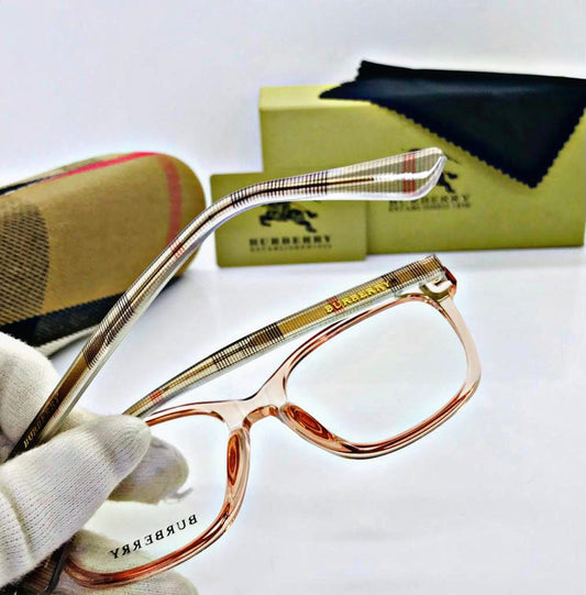 Burberry Transparent Brown Glass With Brown Stick stylish Recangle tined Frame Sunglass For Men's And Women's - Best Casual Use Unisex Sunglasses BB-8902