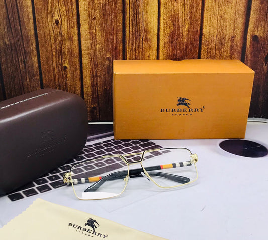 Burberry Transparent Glass With Black Stick With Black Frame stylish Recangle tined Frame Sunglass For Men's And Women's - Best Casual Use Unisex Sunglasses BB-8903