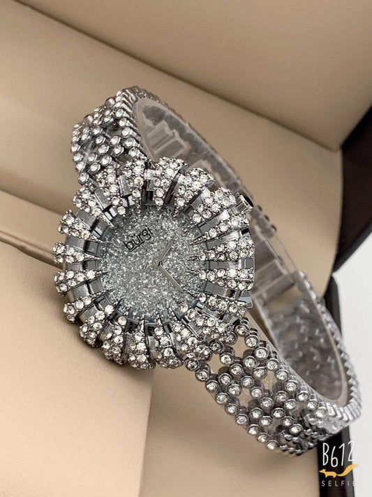 Burgi Branded Analog Silver Watch SophisticatedDiamond Set Braclet Type Watch For Women's_ LUXURY WRIST WATCH BU-54SS