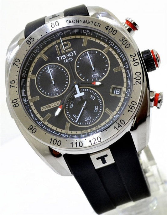 Tissot Chronograph Black Leather Men's Watch Silver Black TS-654L-SB