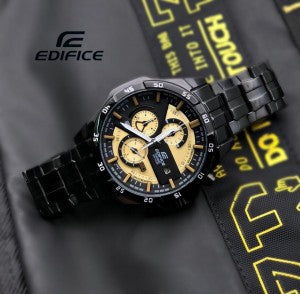Casio Edifice Chronograph Watch With Black Stainless Steel Strap With Multiple Dial To World Times Men's Watch Black Gold EFR-88764