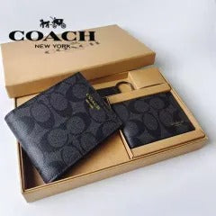 Coach Leather Heavy quality Black color latest full printed design Fancy look wallet for men's CO-W-595