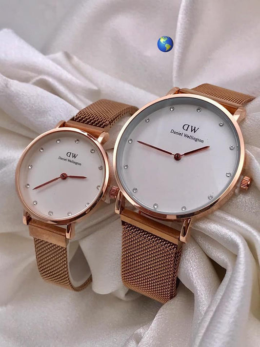 Daniel Wellington Analog Petite Melrose Analog Watch For Couples White Color Dial With Gold Case And Stainless Steel Strap For Couples Watch DW-CPL-5020 - Classy Look Watch For Couples