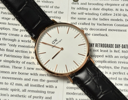 Daniel Wellington Analog Watch Leather Strap White Black Dial Watch With Gold Case And Strap For Men's Watch DW00100129 Dial - Best Watch for Casual Use