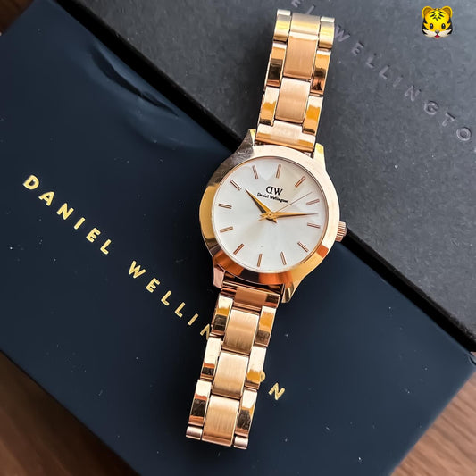 Daniel Wellington Stainless Steel White Color Dial Watch With Gold Case And Strap Watch For Women's Watch For Girl or Woman DW-1024 Dial - Best Watch for Casual Use
