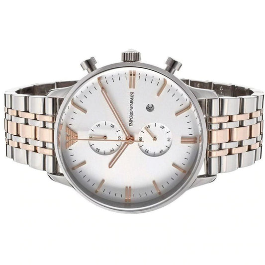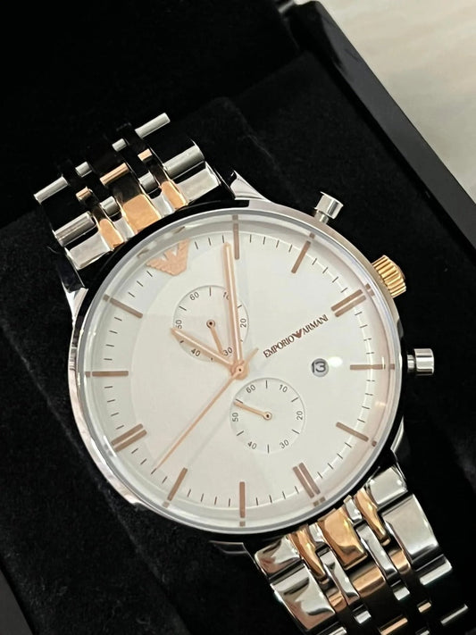 Emporio Armani Chronograph Silver and Gold tone Strap Date men's Watch For Men With White Dial AR1722 Gift Best watch