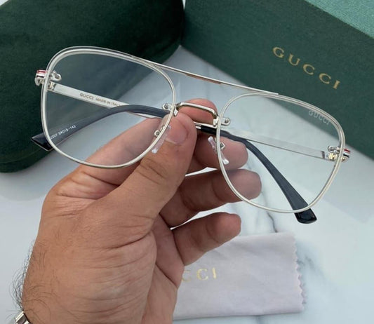 Gucci Branded Transparent Glass Silver Frame Men's Women's Sunglass GU-563 Gift Sunglass