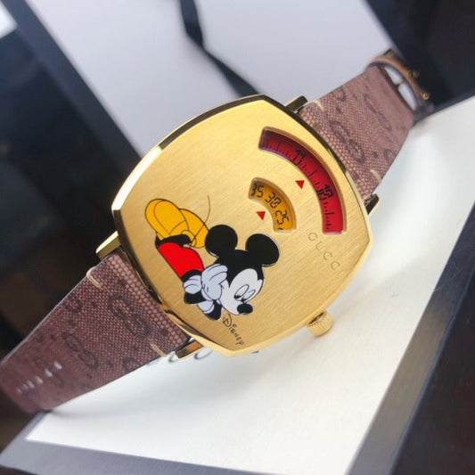 Gucci Brown Color Strap Men's Watch For Man Golden Dial Gift Watch YA-157420