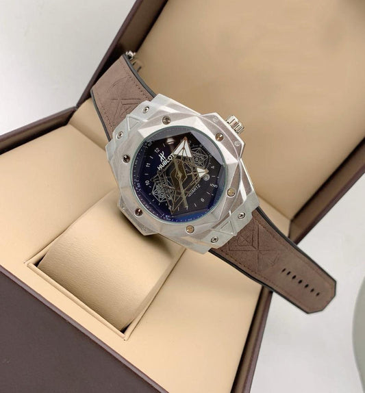 Hublot Mens Watch Silver Case Dial Leather Belt Watch for Man HB-SS01
