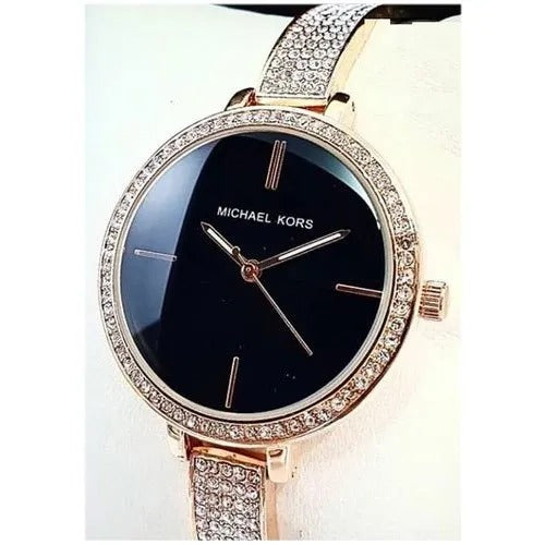 Imported Gold Womens Mk-2134 (Bangle) Watch For Girl Or Woman Black Dial Diamond - Diwali Festive Sale