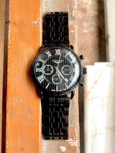 Longines Men's Perpatual Chronograph Black Metal Case Watch For Men's- Best Branded Watch Ever LG-Variants LG-V662