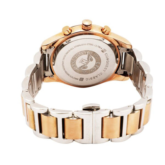 Longines Chronograph Working Men's Watch With Gold & Silver Belt And White Dial Dated Watch For Men's LGN-L2-786