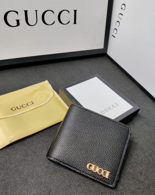 Leather Heavy Quality Full Black Plain wallet with Golden Logo Wallet For Man GU-704