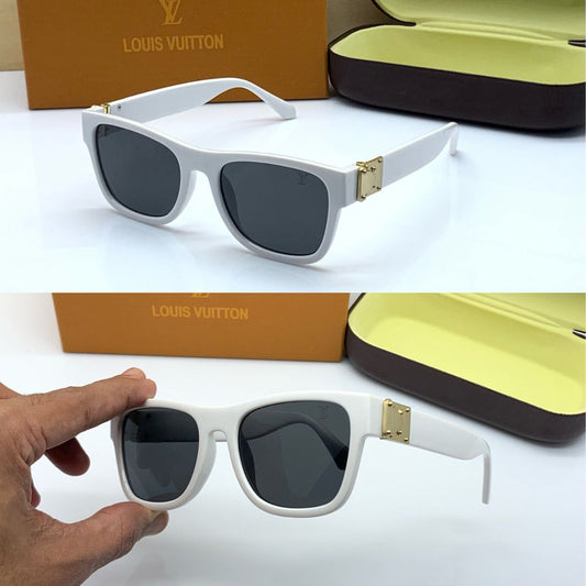 Louis Vuitton Branded Black Glass Men's and Women's Sunglass for Man and Woman or Girls LV-91 White Bold Frame & White Stick- Unisex Gift Sunglass