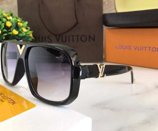 Louis Vuitton Branded Black Glass Men's and Women's Sunglass for Man and Woman or Girls LV-89 Black Bold Frame- Unisex Gift Sunglass