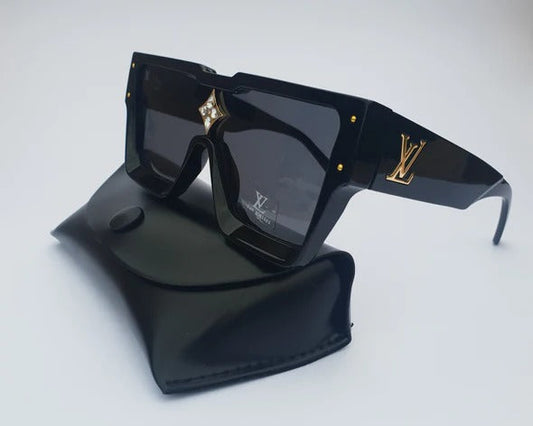 Louis Vuitton Branded Black Big Glass Men's and Women's Sunglass for Man and Woman or Girls LV-7531 Black Bold Frame Gift Sunglass-best for All Look