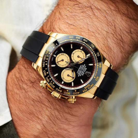 Rolex Cosmograph RoseGold Color Oysterflex Meteorite Dial Ring Bezel Daytona Chronograph Quartz Chronometer Men's Watch - RLX-1167