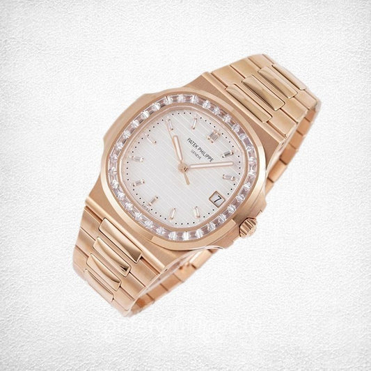 Patek Philippe Nautilus Mad Watch Qurtz Movement Rose Gold White Dial Dated Watch For Men's-Best Men's Collection PK-6543