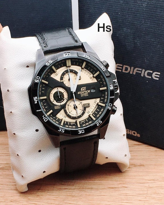 • Casio Edifice Limited Adition Chronograph Yellow Dial Black Strap Leather Dated Men's Watch EFR-557