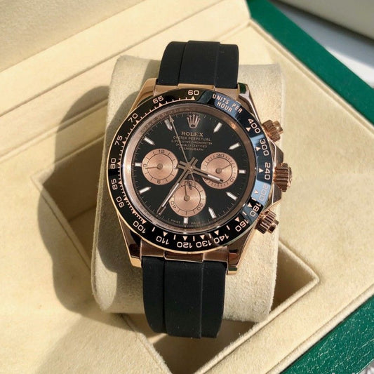 Rolex Cosmograph RoseGold Color Oysterflex Meteorite Dial Ring Bezel Daytona Chronograph Quartz Chronometer Men's Watch - RLX-1167
