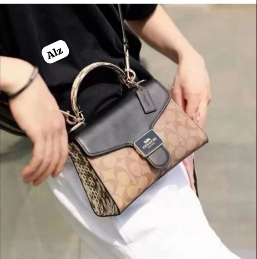 Coach New Black-Brown Printed Leather Satchel Stylist Daily Use Hand-Bag CO-4442-WBG