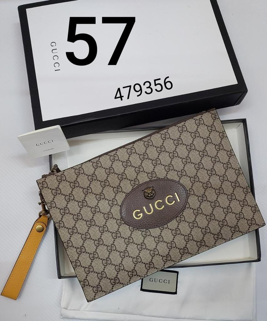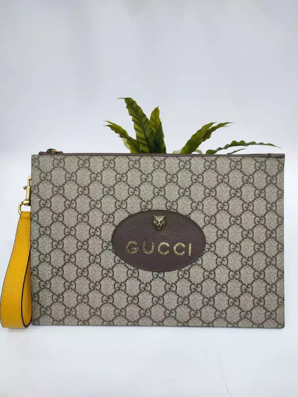 Gucci new classic for men's and women's brown monogram clutch with detachable yellow wristlet strap Neo Vintage GG Supreme Pouch Neo Vintage GG Supreme? Pouch GC-8677
