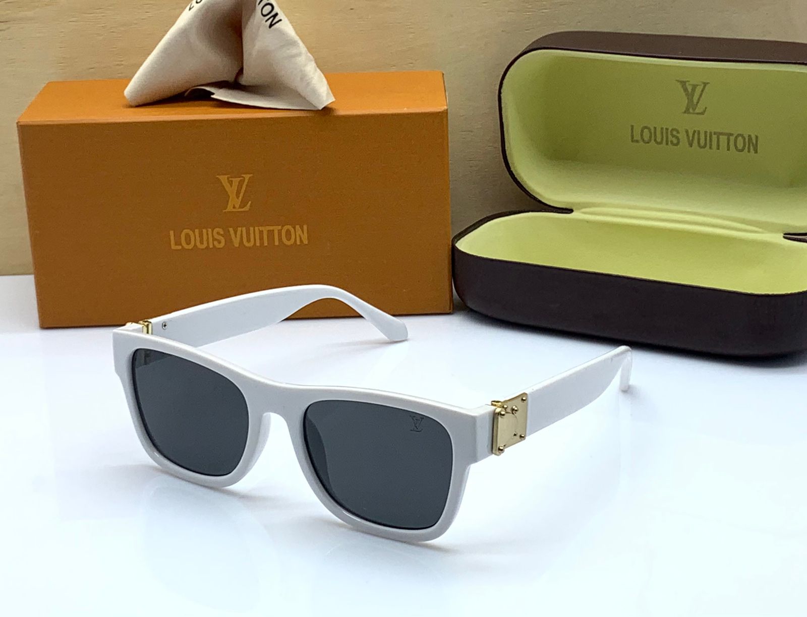 Louis Vuitton Branded Black Glass Men's and Women's Sunglass for Man and Woman or Girls LV-91 White Bold Frame & White Stick- Unisex Gift Sunglass