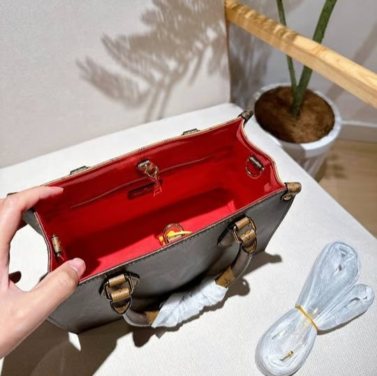 LV New Brown Two-Tone Leather Tote Bag Stylist Daily Use Hand-Bag LV-4447-WBG