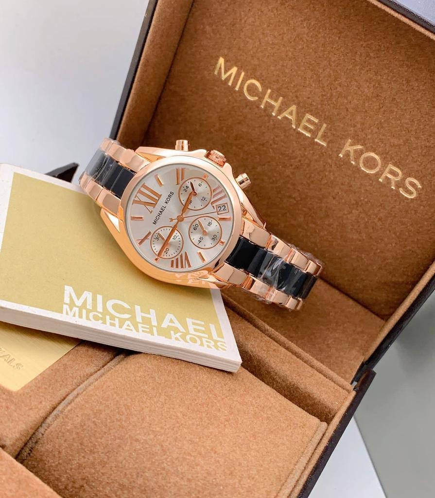 MK Chronograph Rose Gold And Black Strap Women's Watch for Girl or Women White Dial MK-9209
