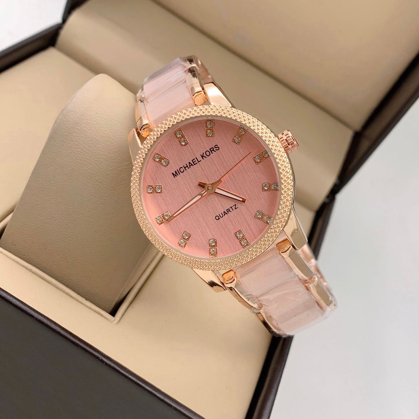 MK Pink Gold Strap Gold Tone Case Stainless Steel Analog Pink Dial Watch Women's Watch For Girl Or Woman Best Gift Watch-MK-8018