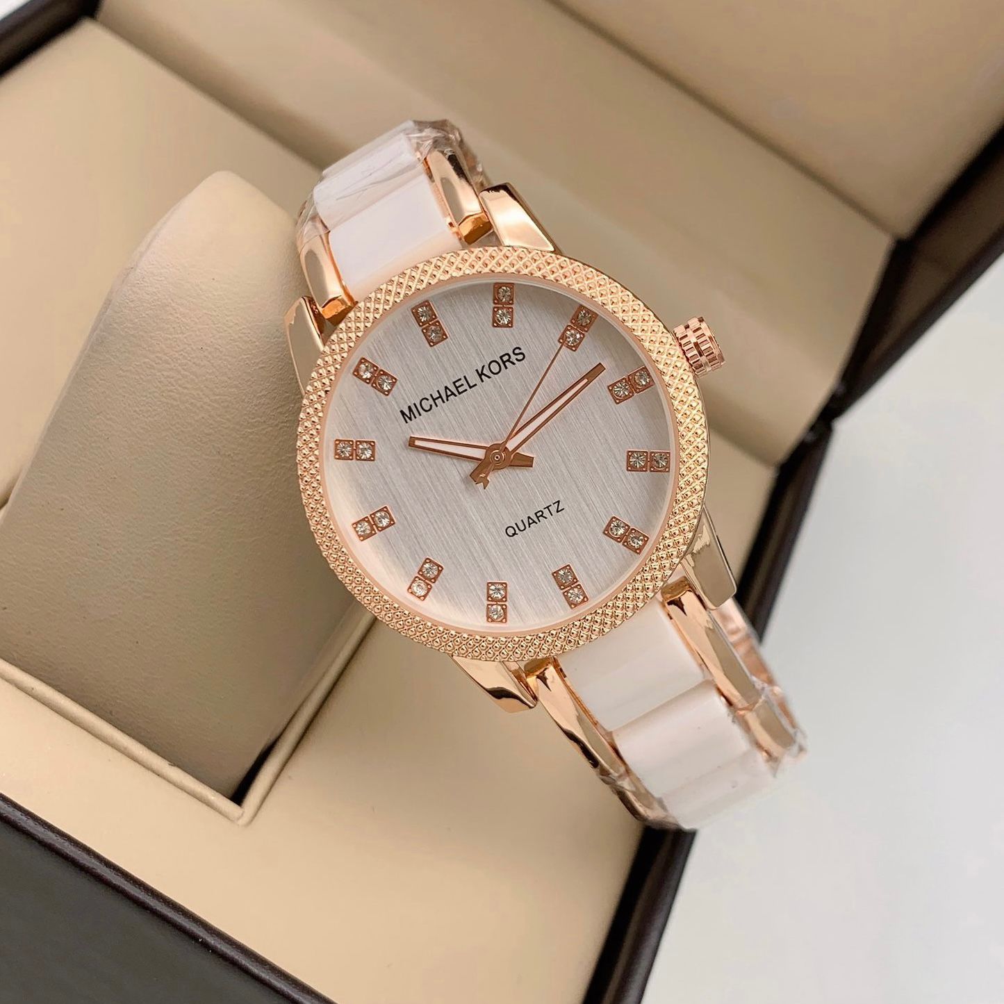 MK White Gold Strap Gold Tone Case Stainless Steel Analog White Dial Watch Women's Watch For Girl Or Woman Best Gift Watch-MK-8016