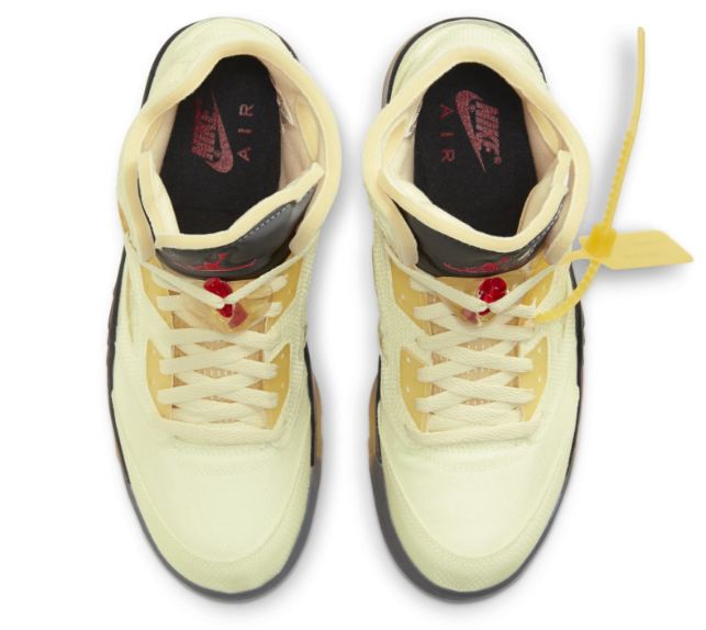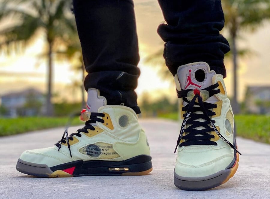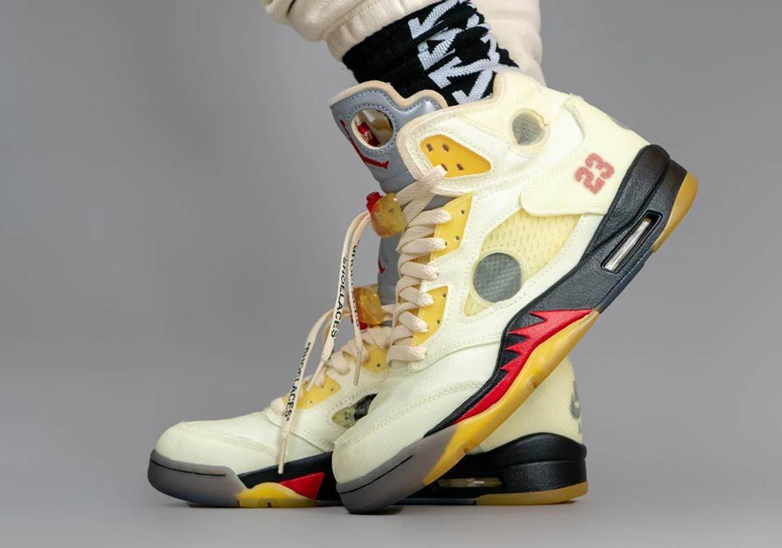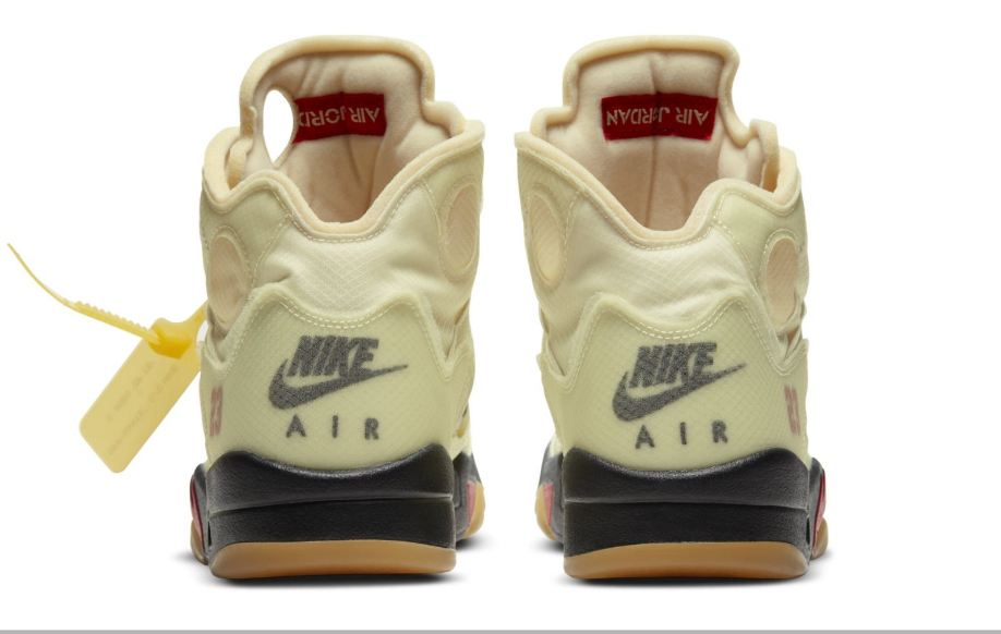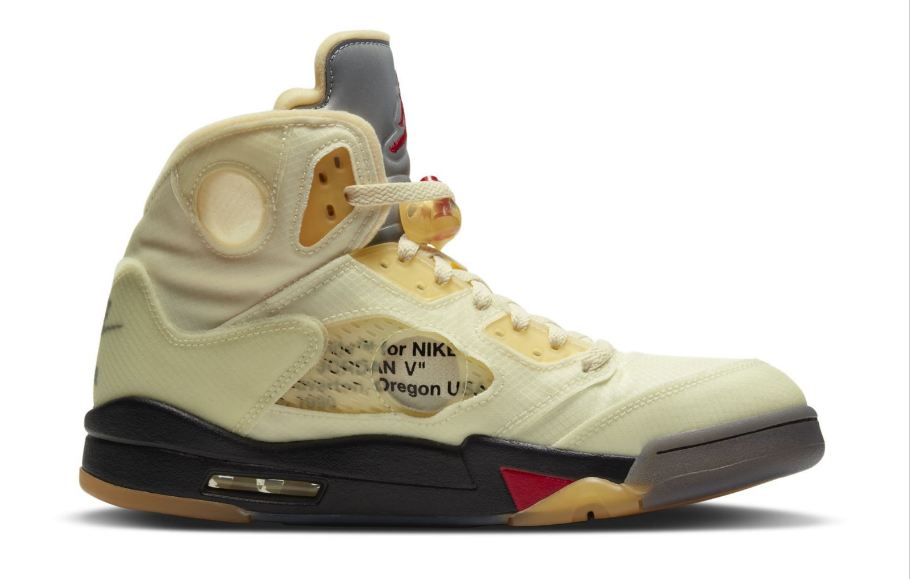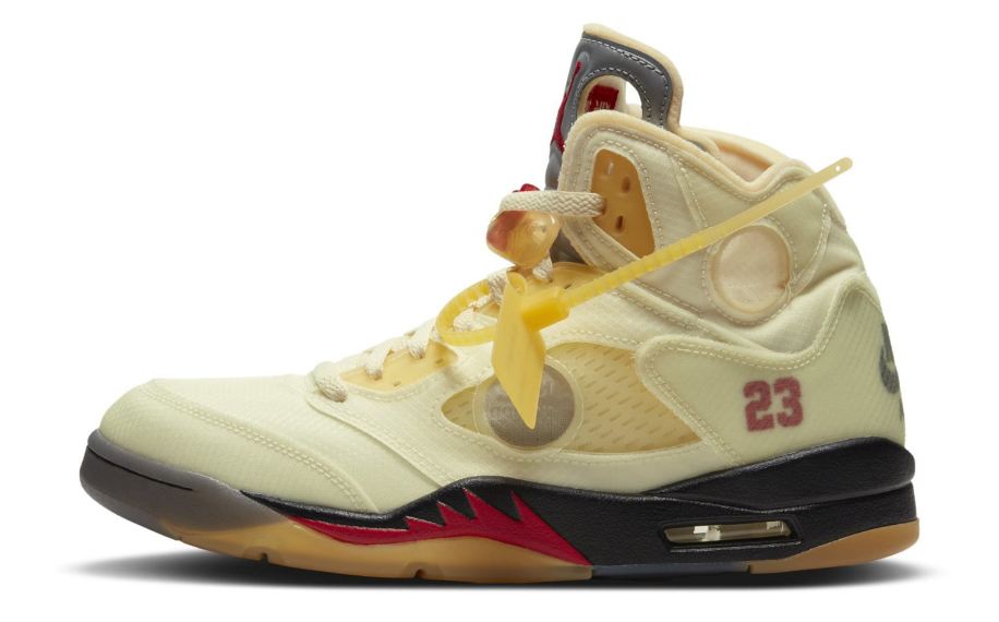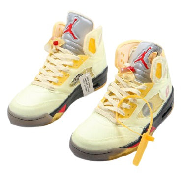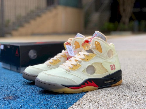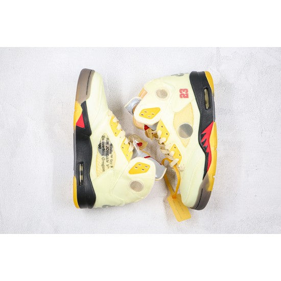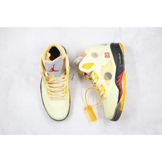 Nike Off-White x Air Jordan 5 SP Sail Fire Red Muslin Black Shoes For Men DH8565-100