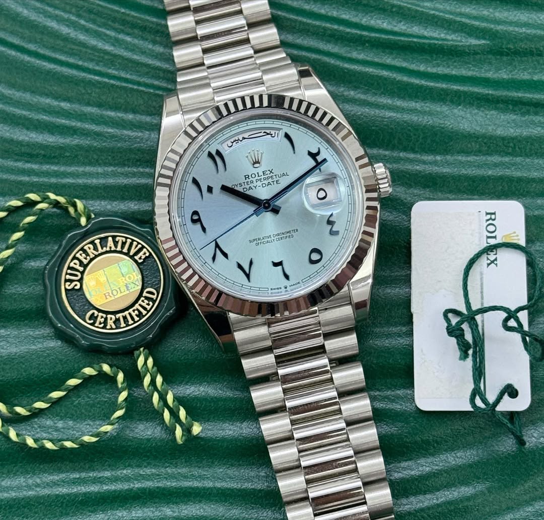 Day-Date 40 Platinum Ice Blue Arabic Dial-RLX-AB