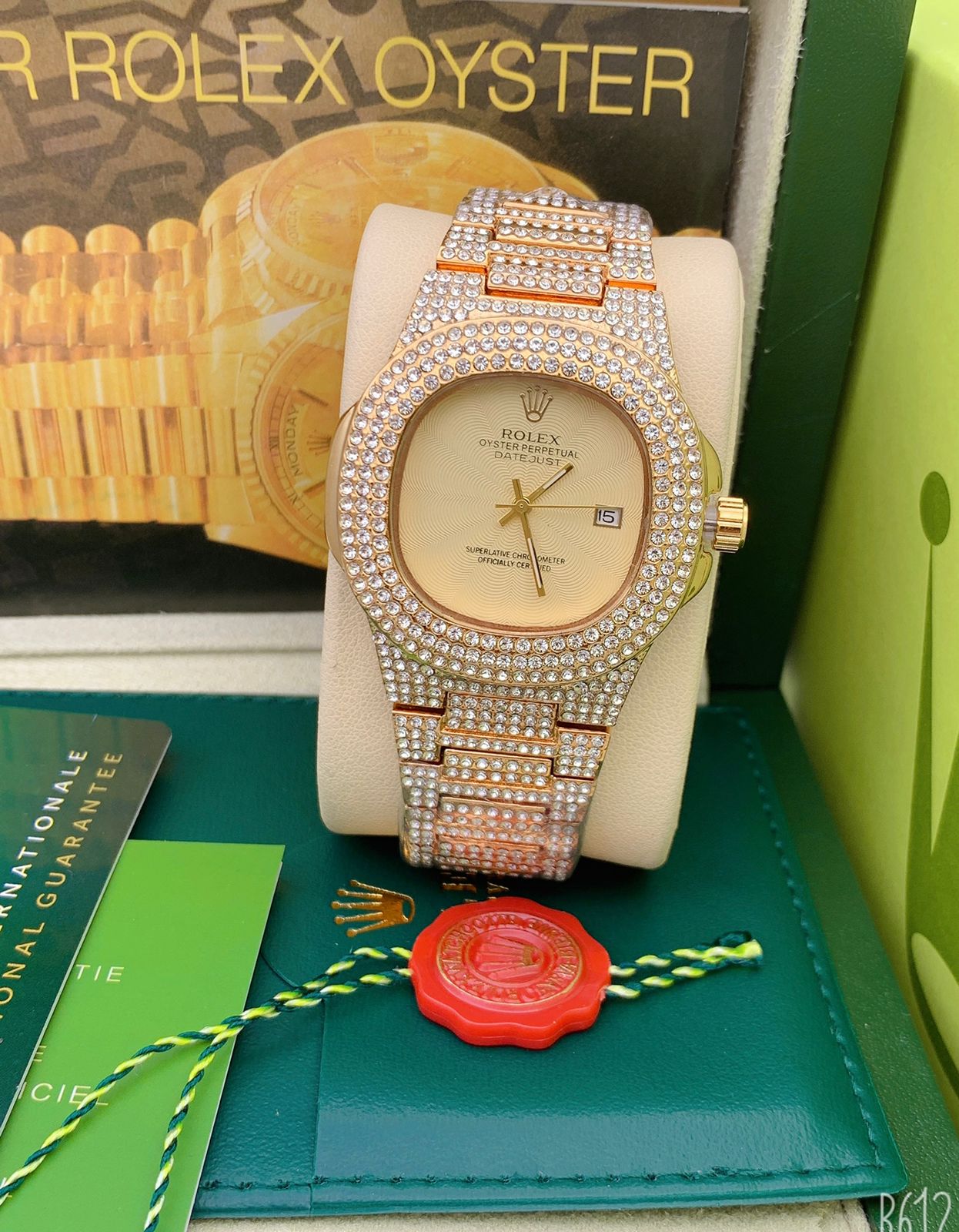 Rolex Diamond Set - Stainless Steel golden colour with yellow creamy dialer and date Watch For Men's And Women's -Best For Stylist Look- Rlx-1123