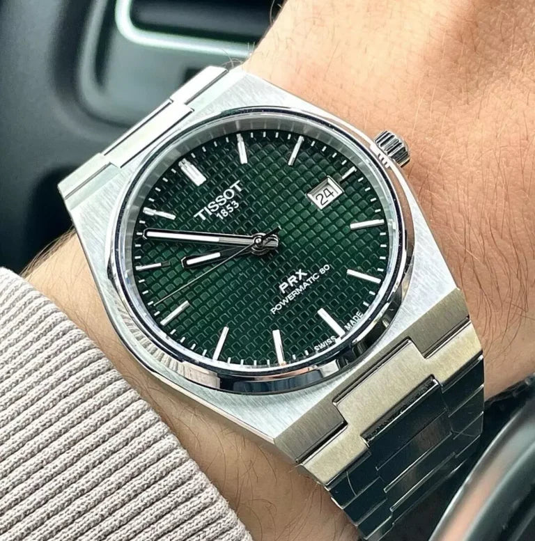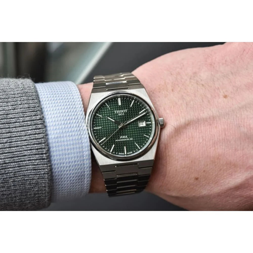 Tissot PRX Powermatic 80 Green Dial Silver Steel Strap Watch for Men - TS-4104